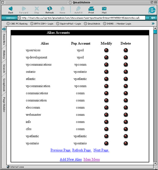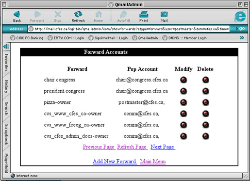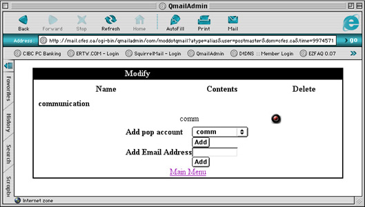 This page allows you to add additional destinations for the account in question. If you would like to add additional email accounts that this account fowards to enter them in the Add Email Address field and select Add. If you wish to have this alias deliver email to additional local accounts select them from the drop down menu and select Add.