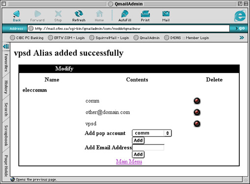The following shows the result of adding an additional local alias (vpsd) and forwarding email account (other@domain.com).