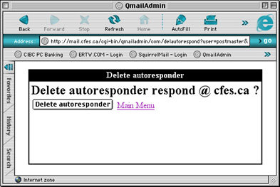 Like the rest of the account types deleting an autoresponder account causes a confirmation message to be presented.