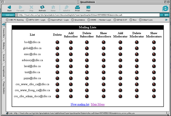 Clicking the New Mailing List link simply takes you to the New Mailing List page.