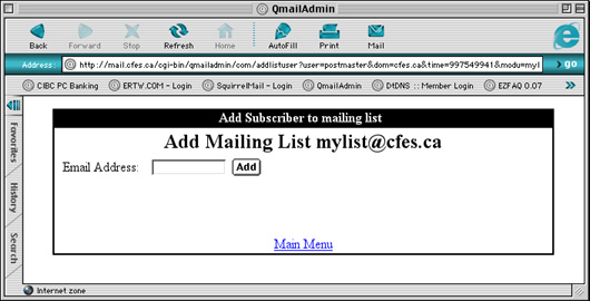 To add a subscriber simply select the Add Subscriber button for the appropriate list. This will present you with the following page: