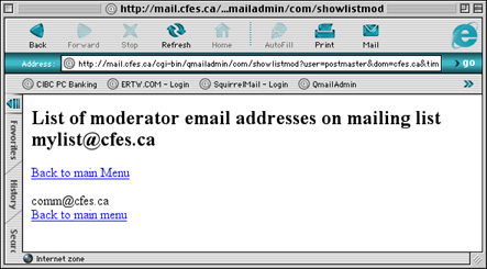 To show the list of moderators simply select the Show Moderators button for the appropriate list. This will present you with the following page: