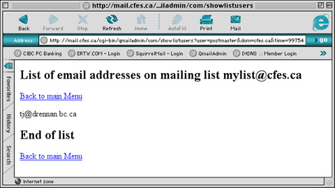 To view the subscriber list simply select the Show Subscriber button for the appropriate list. This will present you with the following page: